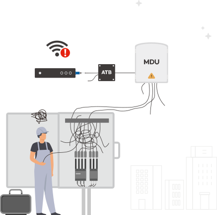 수직 구조의 ISP(가입자망) 메인 케이블 설치 후 각 층에 분기 단자함을 설치하여 분배하는 솔루션